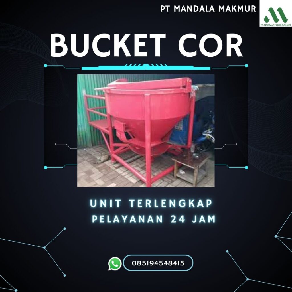 Bucket cor, atau yang juga dikenal sebagai concrete bucket, adalah sebuah wadah atau ember baja berukuran besar yang dirancang khusus untuk mengangkut dan menuangkan adukan beton segar. Alat ini merupakan komponen vital dalam proses pengecoran, terutama untuk proyek-proyek konstruksi yang memiliki area kerja di ketinggian atau sulit dijangkau.