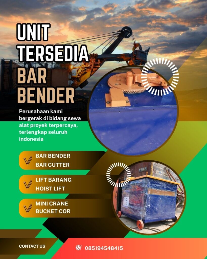 Unit sewa bar bender yang kami sediakan memiliki performa tangguh untuk mendukung berbagai skala proyek pembangunan gedung hingga infrastruktur: