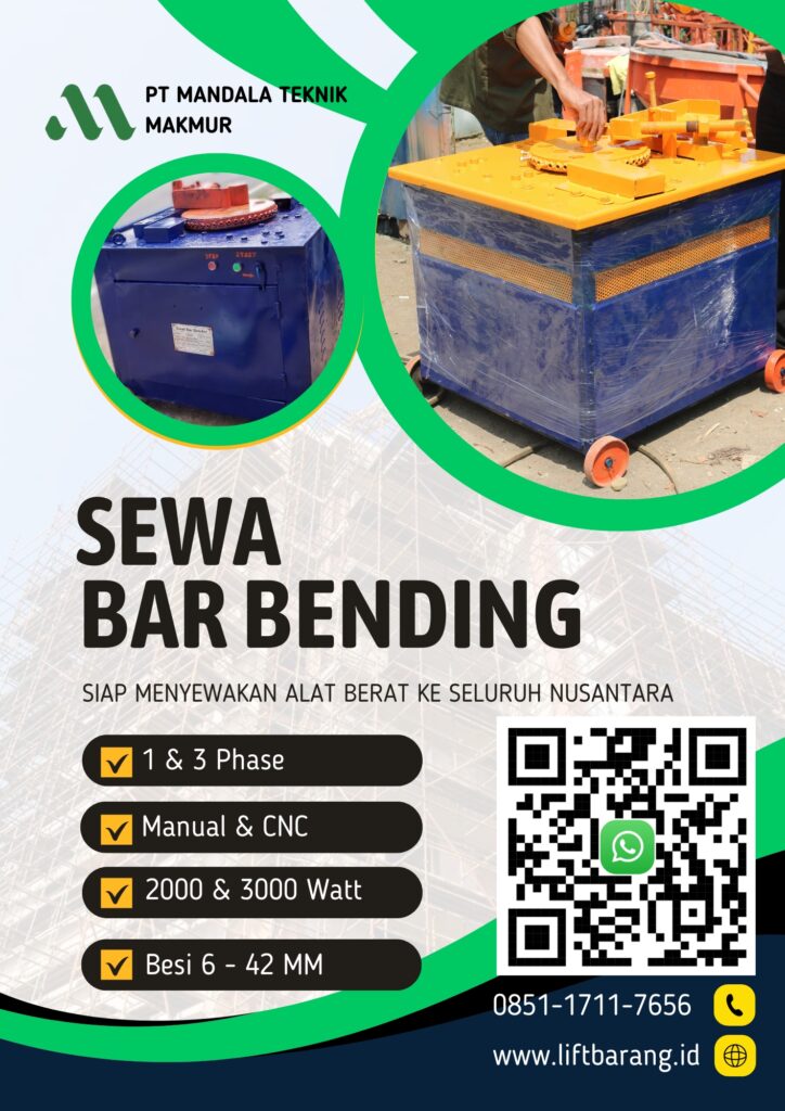 Dengan mesin penekuk besi elektrik ini, Anda bisa mengerjakan ribuan besi dalam waktu singkat dengan hasil yang konsisten. Sewa bar bender di PT Mandala Teknik Makmur (MTM) adalah kunci agar pengerjaan pembesian proyek Anda jadi jauh lebih cepat, rapi, dan tentu saja menghemat biaya tenaga kerja secara signifikan.