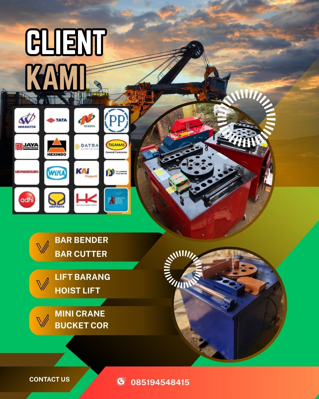 Selain itu, kami secara rutin melakukan pengecekan dan perawatan pada seluruh unit bar bender dan bar cutter agar alat selalu aman digunakan, siap pakai, dan bekerja optimal di Bogor.