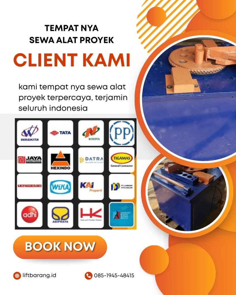 Tim proyek menggunakan layanan sewa bar bender dan bar cutter kami untuk berbagai proyek konstruksi, mulai dari rumah tinggal hingga infrastruktur berskala besar. Mulai dari pembangunan rumah tinggal, ruko, gedung bertingkat, kawasan industri, hingga proyek infrastruktur, seluruh unit kami siap mendukung pekerjaan struktur beton bertulang.