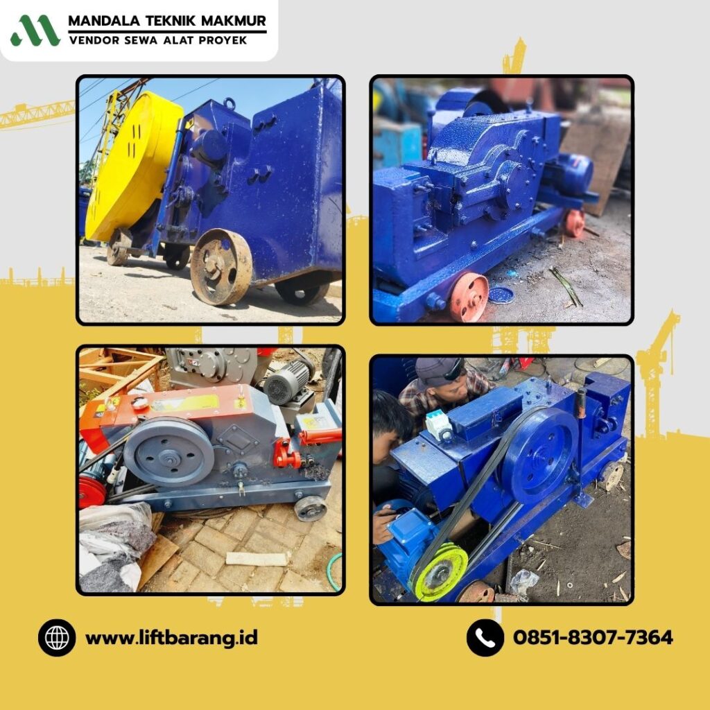 Unit Terintegrasi: Selain alat Bar Cutter &Bar Bender kami juga menyewakan unit Lift Barang (1–4 Ton), Bar Roller, Passenger Hoist, hingga Genset 80KVA.