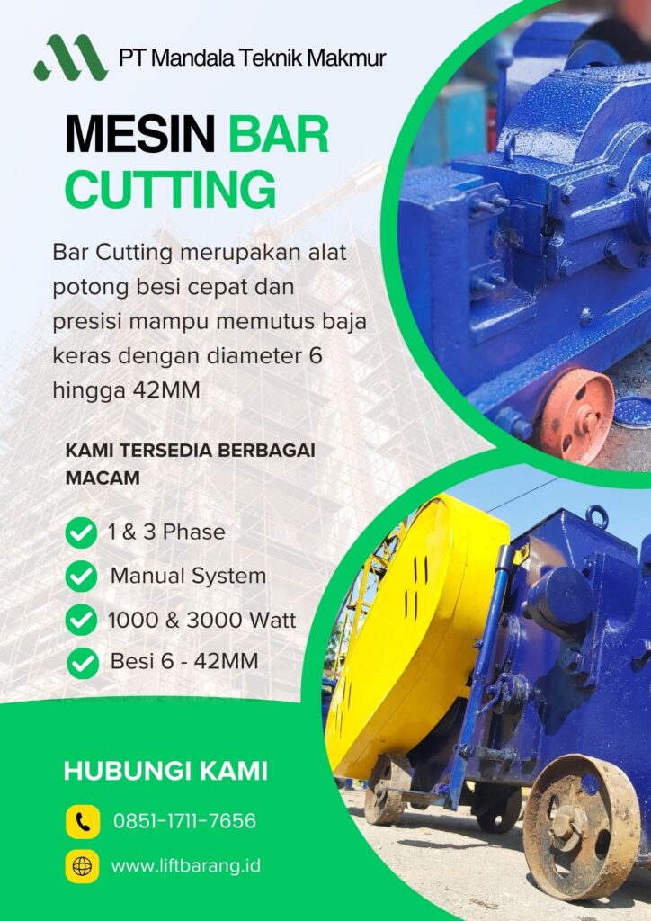 Dengan mesin pemotong besi elektrik ini, Anda bisa memotong besi tulangan berdiameter besar dalam hitungan detik dengan hasil yang rapi dan konsisten. Sewa bar cutter di PT Mandala Teknik Makmur (MTM) menjamin pekerjaan pembesian Anda jadi jauh lebih produktif dan hemat biaya operasional.