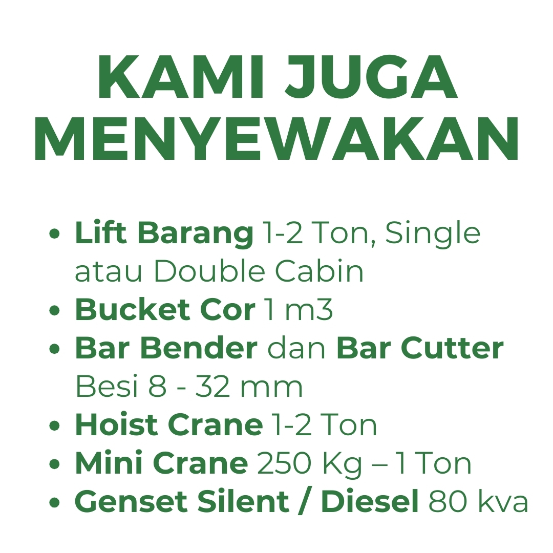 Punya proyek bangunan bertingkat? Sedang renovasi rumah? Atau butuh angkat barang berat ke tempat yang sulit dijangkau? Kami punya solusi terbaik untuk Anda!