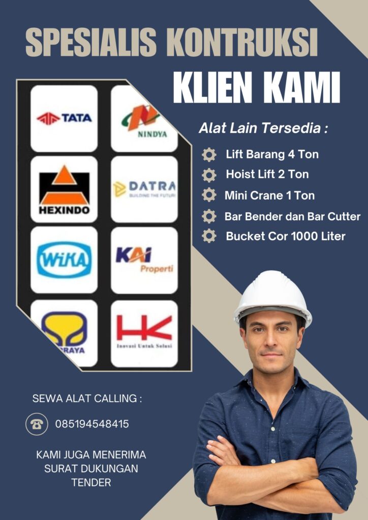 Konstruksi Rangka (Hoistway): Struktur utama yang biasanya terbuat dari besi UNP atau WF sebagai jalur pergerakan lift.