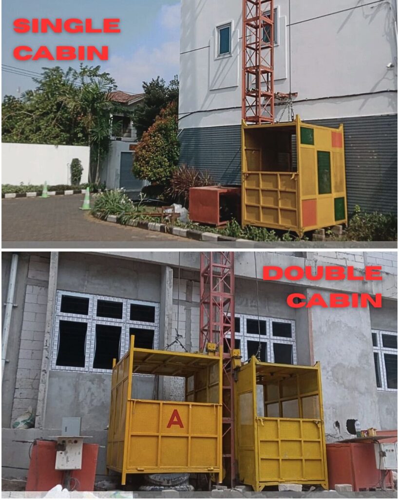 Tersedia merek Alimak dalam tipe single dan double cabin yang setiap cabin punya kapasitas 1 – 2 ton,