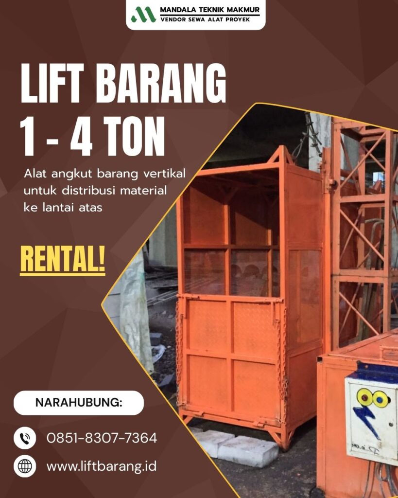 Dalam dunia konstruksi gedung bertingkat, Sewa Lift Barang merupakan kebutuhan yang sangat krusial. Alat ini berfungsi khusus untuk memindahkan bahan bangunan dan peralatan secara vertikal dari permukaan tanah ke lantai yang lebih tinggi secara efisien.