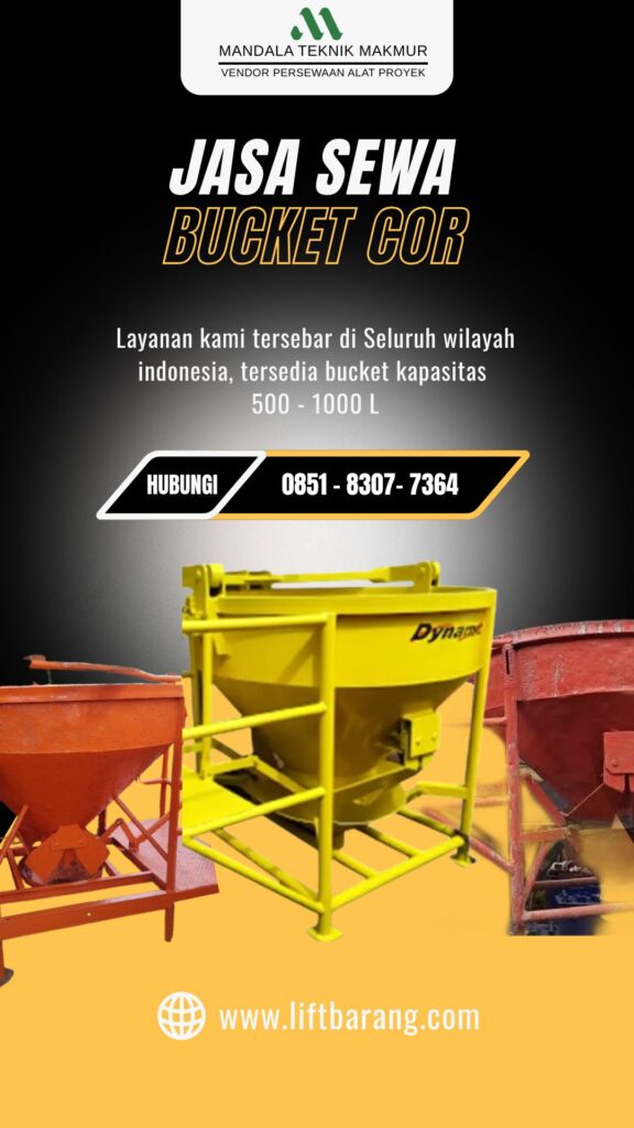 Langsung hubungi saja 0851-8307-7364 buat konsultasi soal kebutuhan bucket cor di lokasi proyek kamu, tim marketing kami siap buat melayani sepenuh hati.