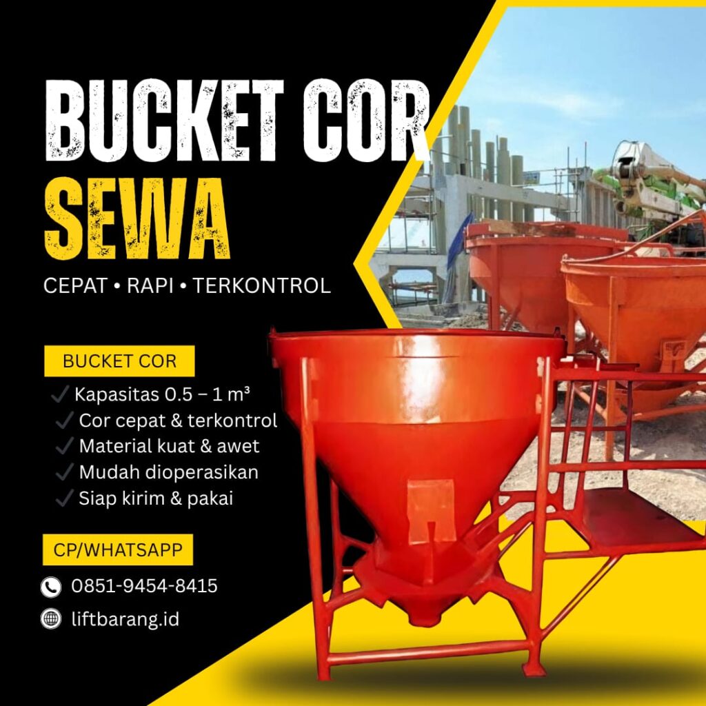 – Keunggulan: Pilihan sewa bucket cor paling populer karena kapasitasnya yang pas untuk ritme kerja gedung bertingkat standar.